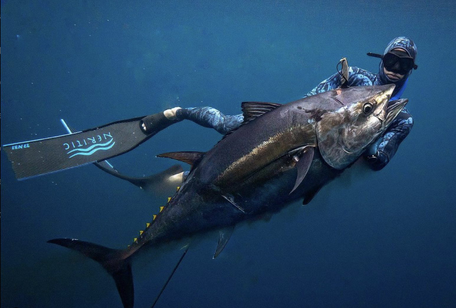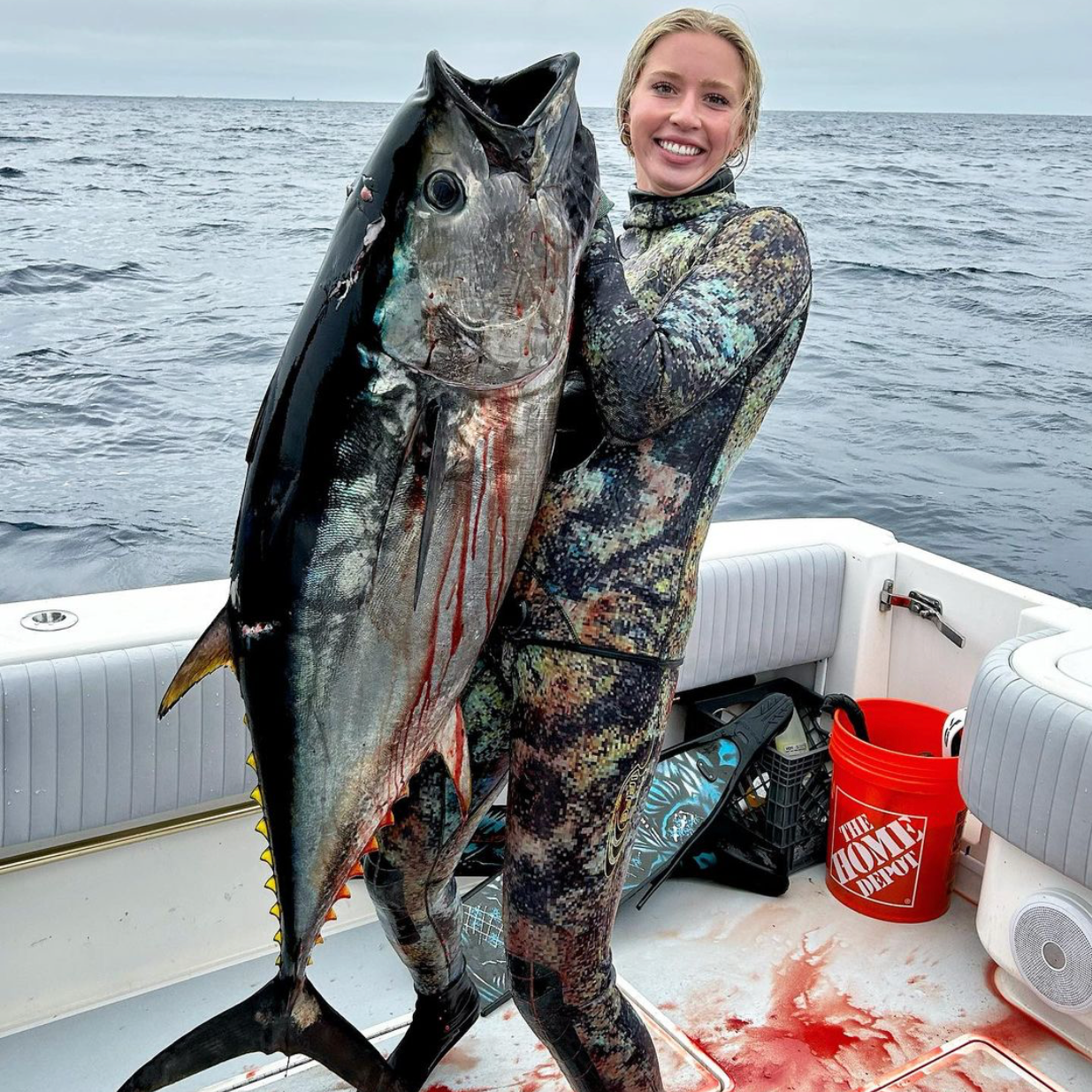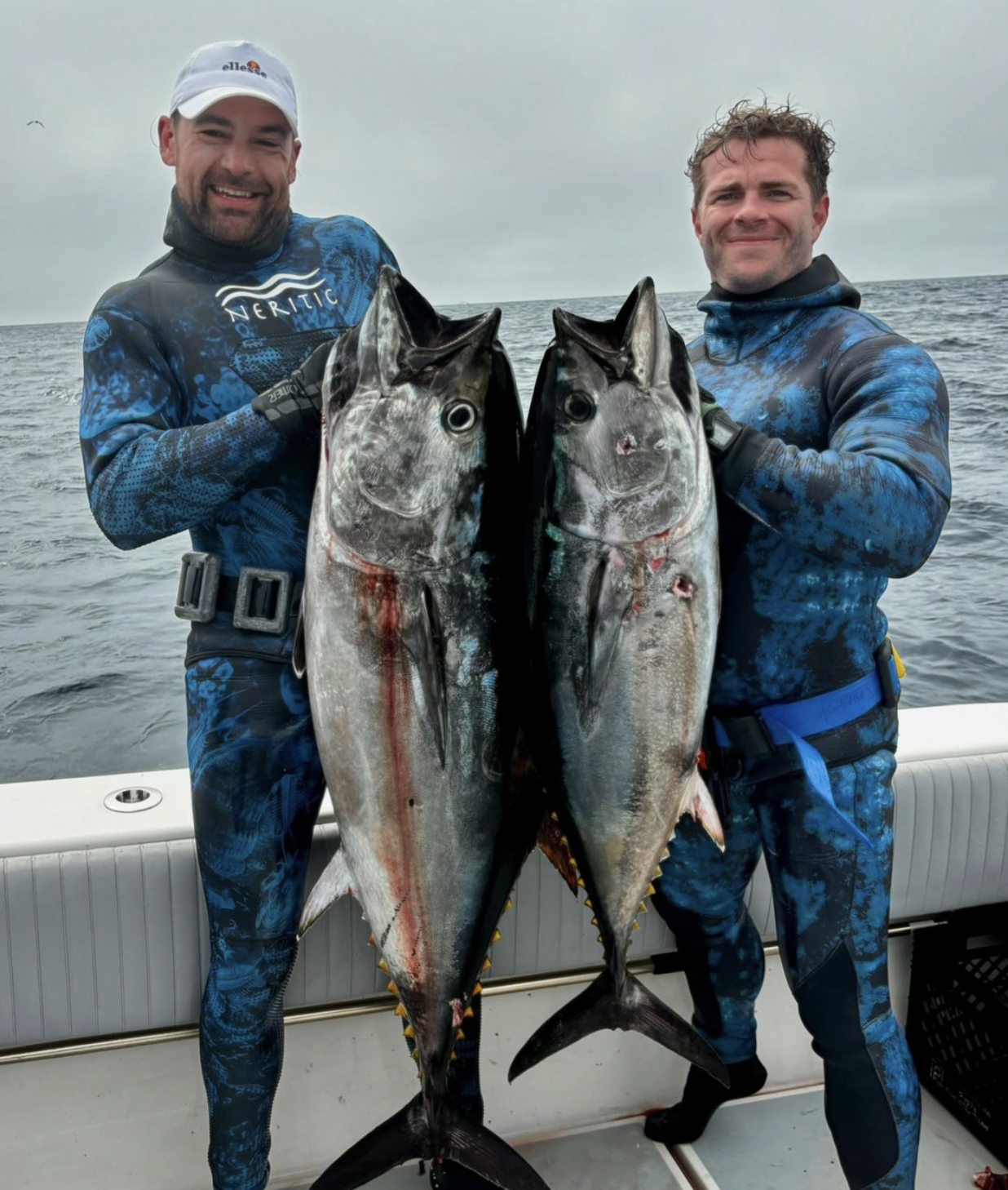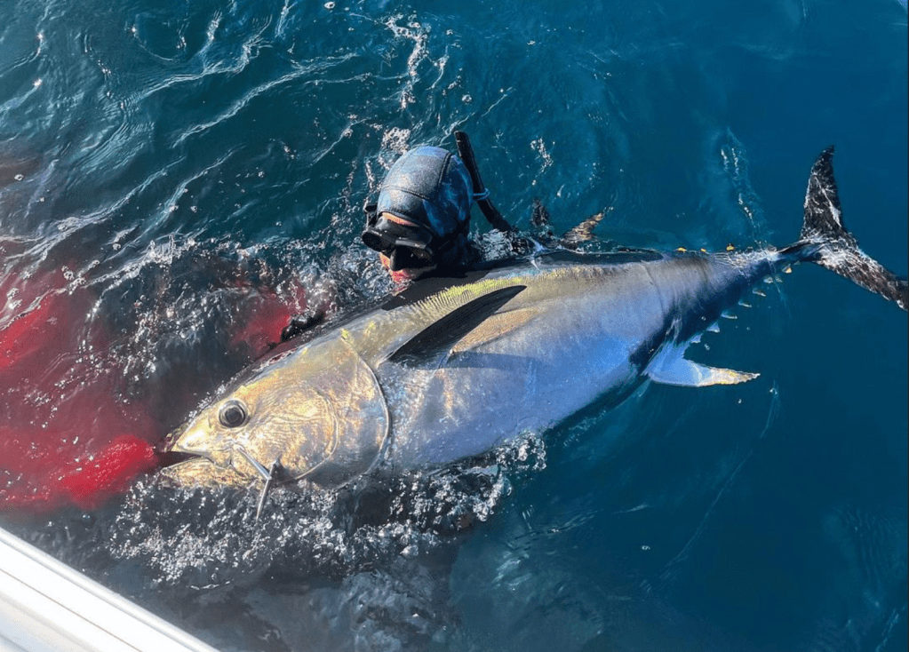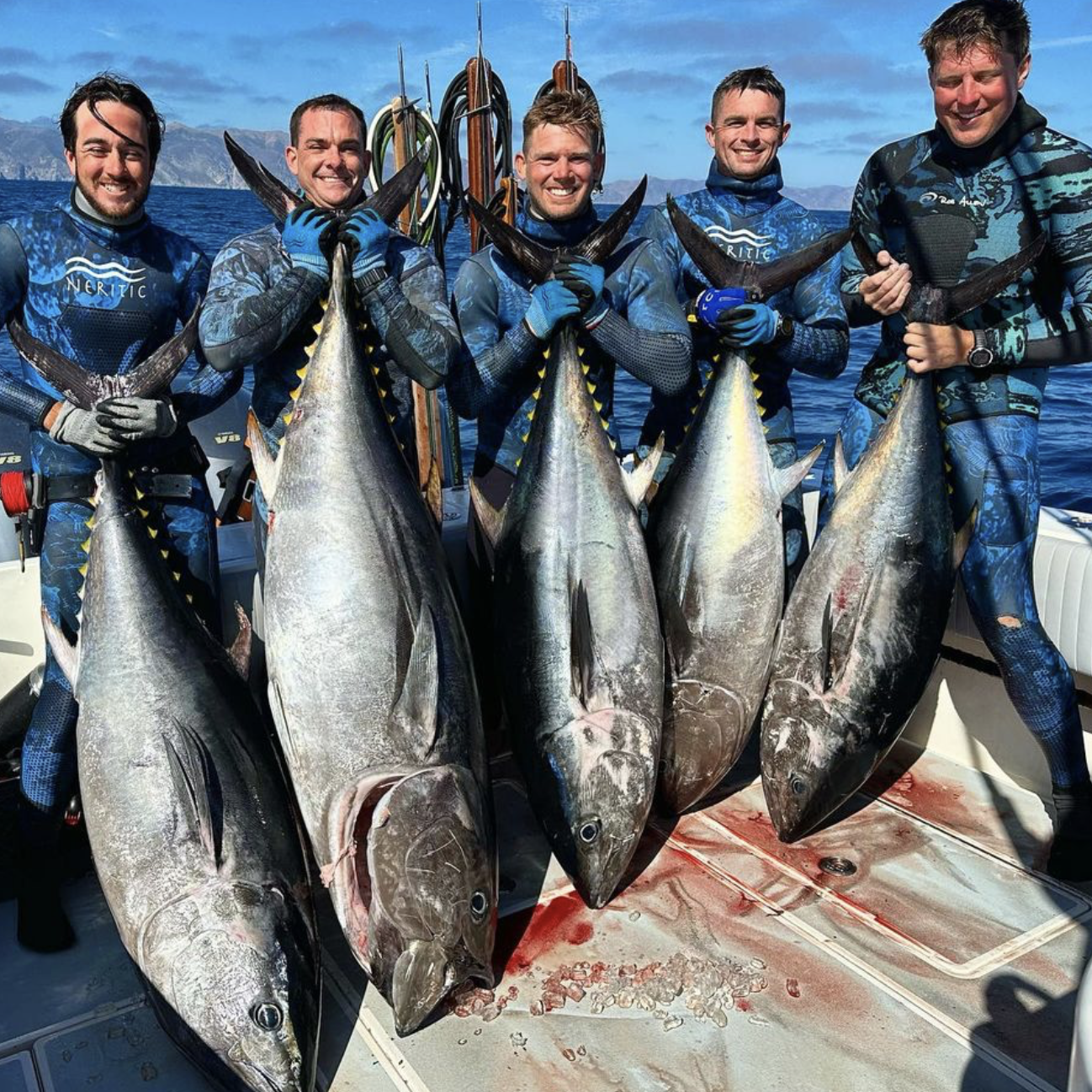 When you’re chasing tuna, having a reliable boat is non-negotiable. That’s why we run our trips on a 39-foot Contender Center Console, powered by triple 350 hp Yamaha outboards. With a range of over 500 miles on a single tank, we can fish almost anywhere. More speed means less time traveling and more time in the water, giving you the flexibility to hit multiple spots during your charter. California’s Bluefin tuna are legendary, often reaching up to 200 pounds, and seeing one rise from the depths is a heart-pounding moment. You’ll be diving as deep as 80 feet to find that prize catch. Each day will be spent cruising the ocean, and once we spot a school, you’ll be in the water, ready to take your shot. Bring your tuna gun, extra shafts, float lines, floats, 5mm wetsuit, mask, snorkel, fins, and dive belt. Need new or rental gear? Just ask us about our top-of-the-line equipment.